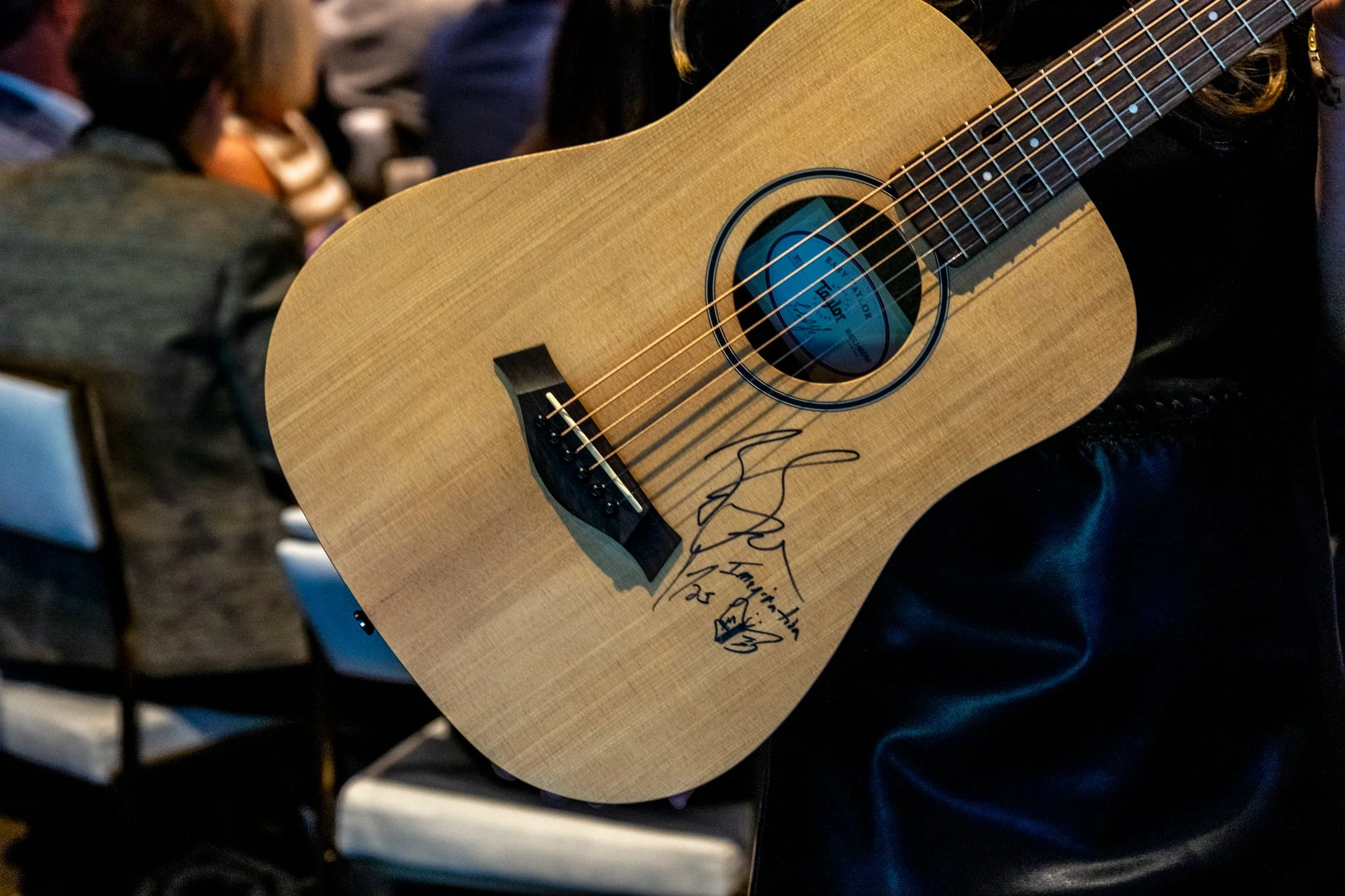 Brown not only provided entertainment at the luncheon, but also offered his support for Dolly Parton’s Imagination Library of Ohio by donating a signed guitar, which was put up for auction.